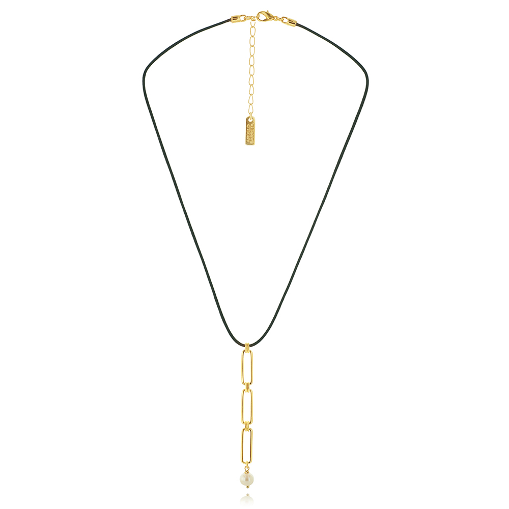 Necklace with cord, freshwater pearls & goldplated rectangle elements! Extension Chain – Nickel Free Gold Plating (Hypoallergenic)